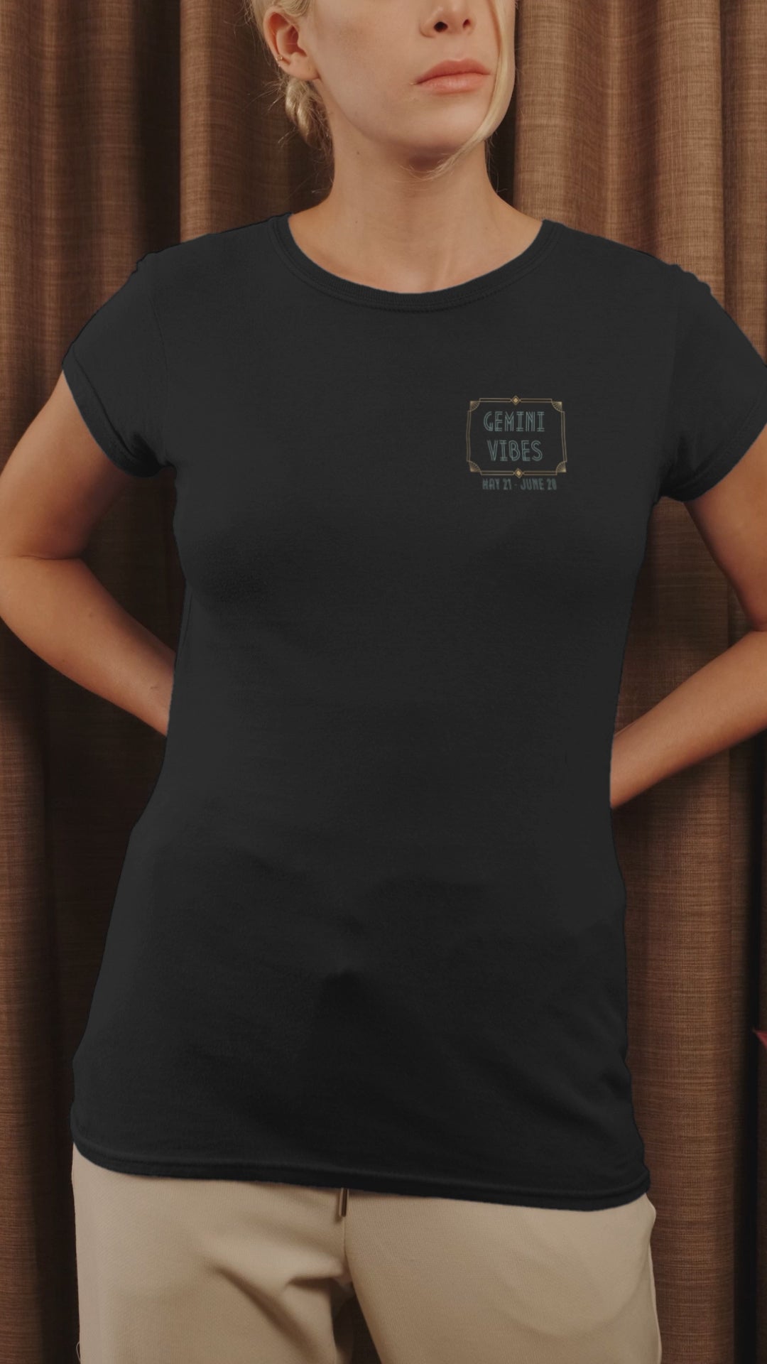 Introducing "The Twins Tee" – Art Deco design tailored specifically for the female Gemini. This chic and stylish t-shirt captures the quintessential duality of Gemini's personality, known as "The Twins," through its elegant and symmetrical Art Deco motifs. Crafted with precision, the t-shirt features a striking design that mirrors the dual nature inherent in Gemini's character. The merging of the two designs at the center symbolizes the seamless blend of the two facets of a Gemini's personality. This t-shirt is not just a piece of clothing; it's a reflection of the dynamic and multifaceted nature of Gemini women, making it a perfect tribute to their complex and captivating spirit. Ideal for casual outings or dressed up with some pearls and a pencil skirt, the Gemini "The Twins" Tee is a must-have for any Gemini looking to express her unique personality through her fashion choices.