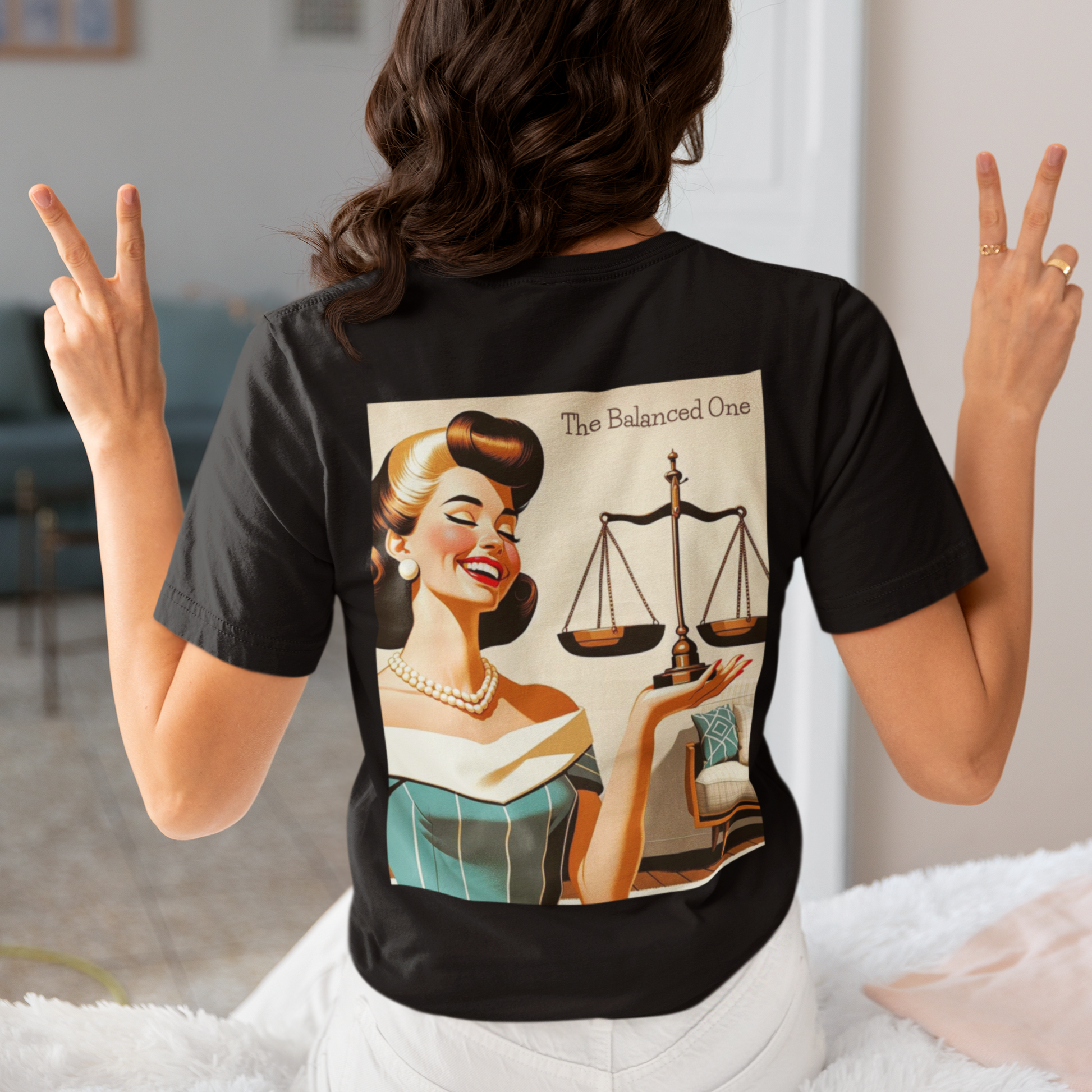 Introducing our "Libra Balance Tee", where playful midcentury modern design meets the harmonious spirit of the Libra zodiac sign. Crafted especially for the chic and balanced Libra lady, this tee celebrates her unique character with style and flair.