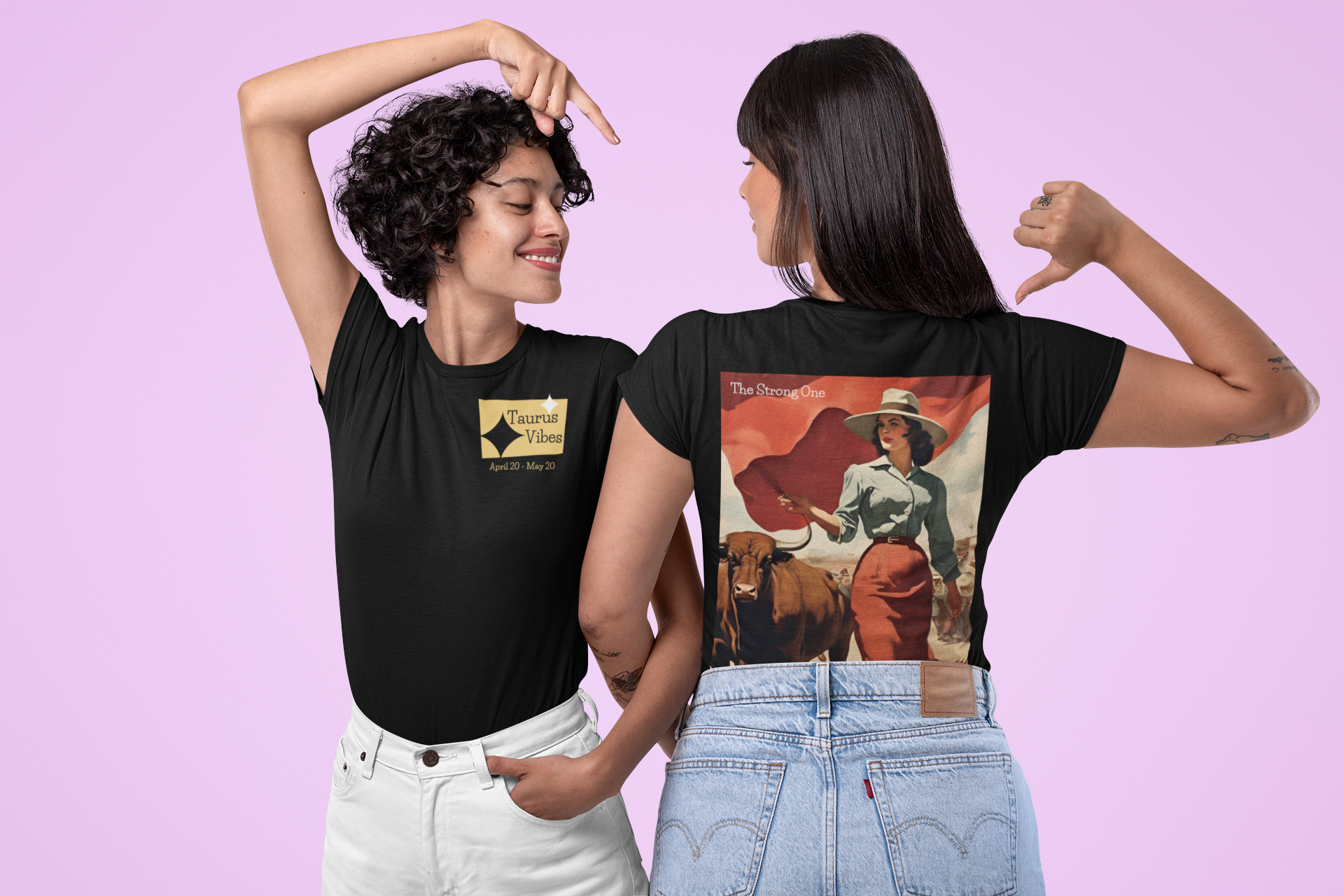 Embody the strength and steadfast spirit of Taurus with our 'Strength Tee', beautifully adorned with an elegant midcentury style graphic that captures the essence of the reliable and determined Taurus woman. The illustration features clean, geometric lines and a robust, earthy palette that reflects the grounded nature of the sign. Crafted from high-quality materials for enduring comfort and style, this tee is perfect for the woman who is as strong as she is sensual. It's a wearable tribute to the enduring power and beauty of the Taurus spirit.